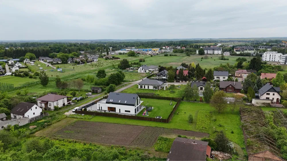 Działka leży w spokojnej, kameralnej okolicy z dominującą zabudową jednorodzinną – nowe i zadbane domy, mało bloków, dużo zieleni, drzew, krzewów i pól w bezpośrednim sąsiedztwie. To miejsce, w którym rano budzi Cię śpiew ptaków, a wieczorem możesz usiąść na tarasie i usłyszeć… ciszę. A jednocześnie jesteś w zasięgu wszystkich miejskich udogodnień – sklepy, apteki, szkoły, przedszkola, przychodnie, siłownie, basen kryty, hale sportowe – wszystko w promieniu 2–4 km.